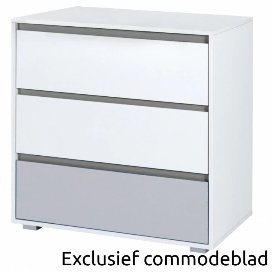 De commode Jasmijn wordt gekenmerkt door een mooie strak design gecombineerd met witte en grijze tinten. De commode is gemaakt van hoogwaardig plaatmateriaal en beschikt over drie ruime opbergladen. De maten van de commode Jasmijn zijn compact, maar wel zeer praktisch ingedeeld.