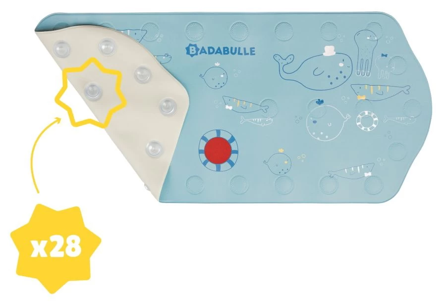 Met deze vrolijke marine Badabulle XXL badmat wordt badderen een feestje voor jouw kleintje. De grootformaat mat is ter bescherming van vallen en uitglijden en bedekt een groot deel van het bad.