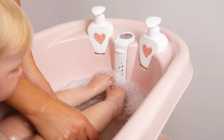 Het thermobad van Bébé-Jou is een babybadje dat zich onderscheidt in functionaliteit en vormgeving. Dankzij de geïntegreerde badthermometer kan je in één oogopslag de exacte temperatuur van het badwater aflezen!