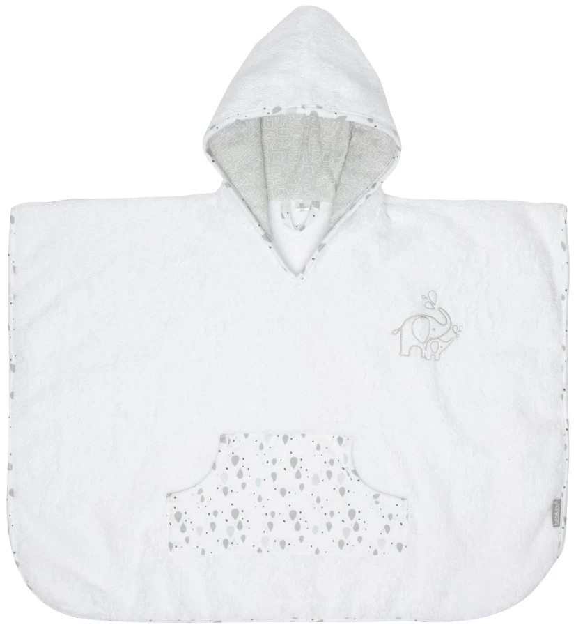 De poncho is wit met grijze accenten en heeft een leuke print met het schattige olifantje Ollie. Ideaal te combineren met de andere produten uit de Ollie collectie! De poncho is wasbaar in de wasmachine op 40 graden en is Öko-tex gecertificeerd en dus uitvoerig getest.
