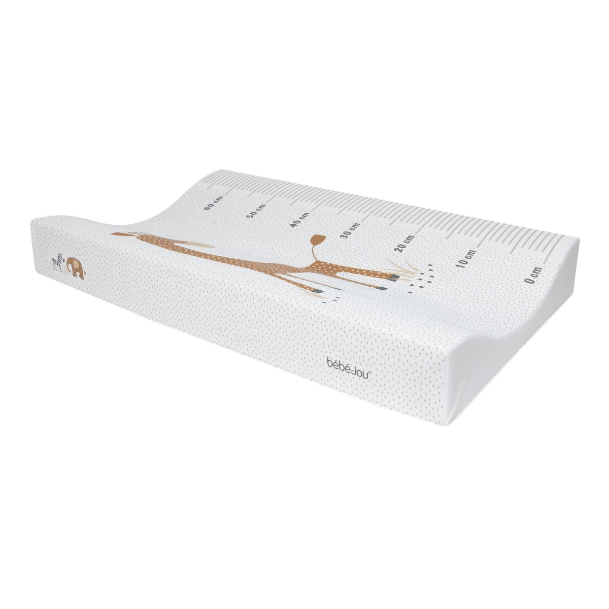 Op dit comfortabele aankleedkussen van Bebe-Jou heb je je kindje in een handomdraai gewassen en aangekleed! Hij heeft een giraffe print met aan de zeikant een handige lengte meter. Door de waterafstotende laag is het kussen gemakkelijk schoon en droog te maken, handig bij het wassen of in geval van een ongelukje!