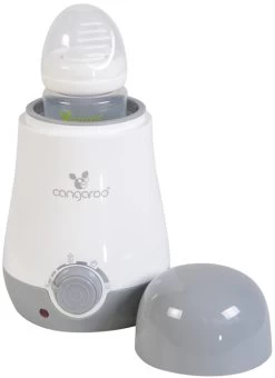Deze elektrische Babyuno Flessenwarmer van Cangaroo is erg praktisch! Het is een multifunctionele flessenwarmer met een draaiknop om te schakelen tussen de verschillende standen. De temperatuur kan op drie standen worden ingesteld: 40, 70 en 100 graden. Dankzij de grote capaciteit kan hij vrijwel alle merken en maten flesjes opwarmen.