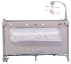 Het Once Upon A Time campingbedje heeft gaas aan de zijkanten zodat je je kindje goed in de gaten kunt houden en er een goede luchtcirculatie is. Daarnaast heeft hij een kruipluik met een ritssluiting, 2 wieltjes voor makkelijk verplaatsen en een speelboog met leuke knuffeltjes eraan.