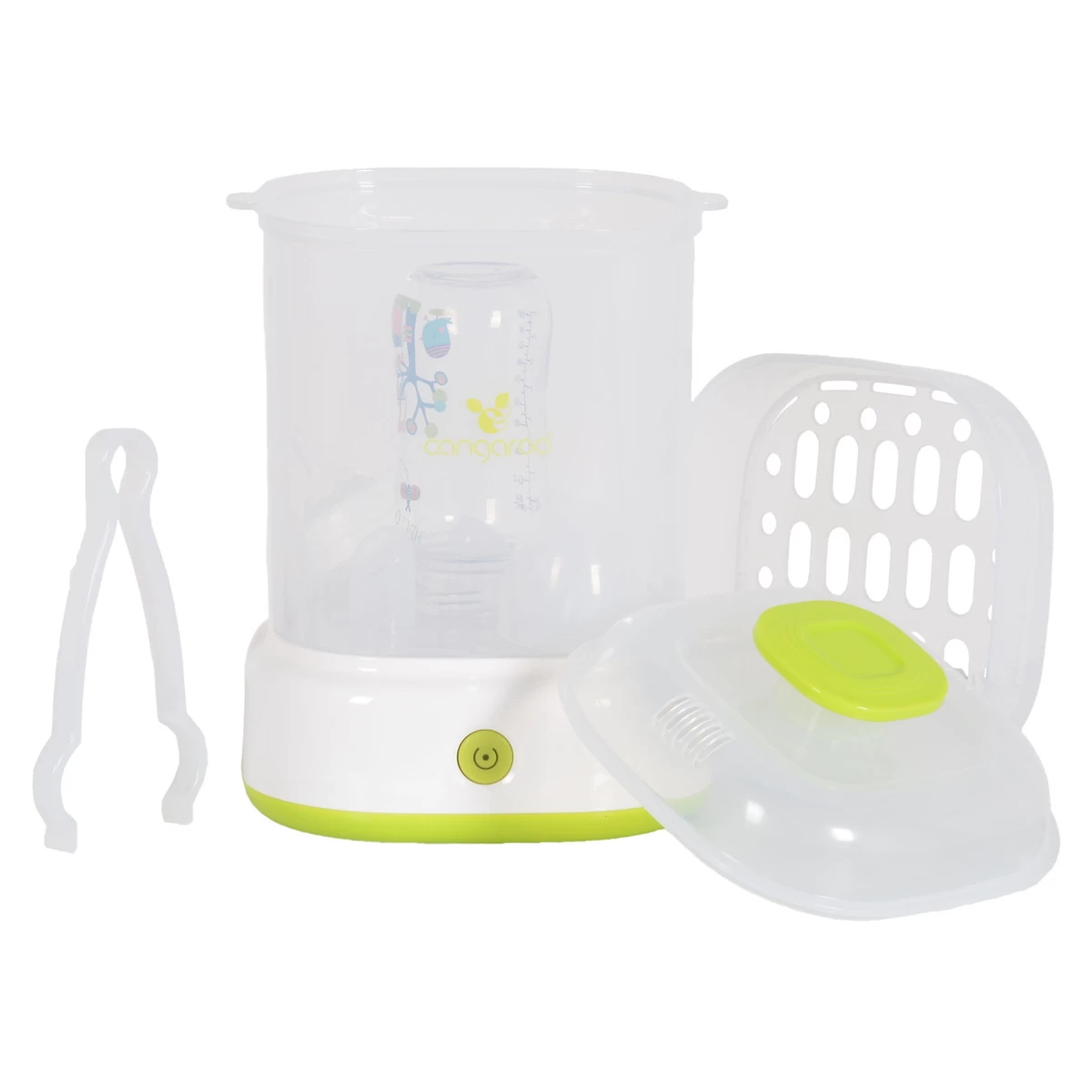 Met deze handige elektrische stoomsterilisator van Cangaroo steriliseer je 4 of 5 flesjes tegelijk in maar 8 tot 10 minuutjes.
