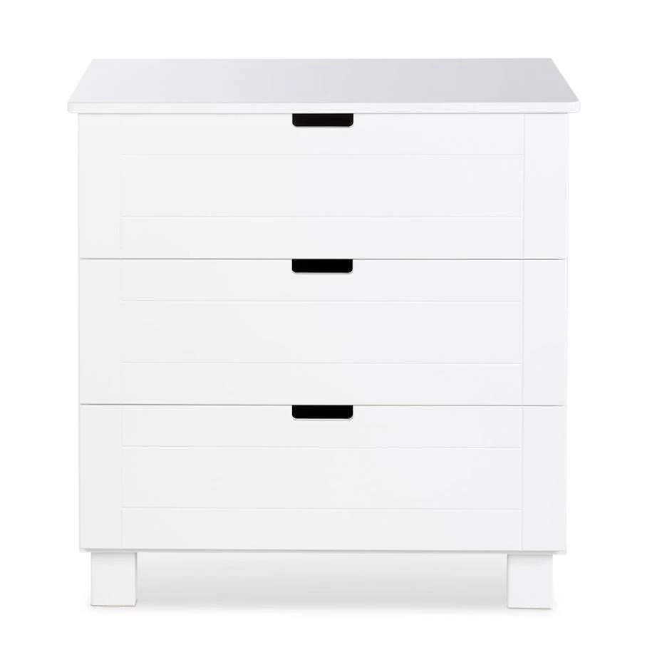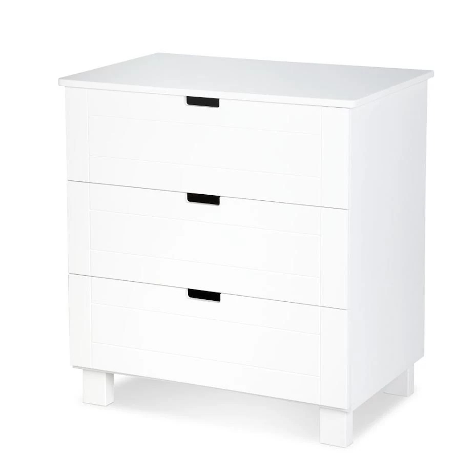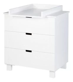 De commode Lieke is een stevige en praktische commode met een strakke witte kleur. De drie handige lades zorgen ervoor dat je altijd alle babyverzorgingsspulletjes makkelijk en dichtbij in de buurt hebt. Het commodeblad is afneembaar zodat je de commode later ook als ladekast kunt gebruiken in de kinderkamer.