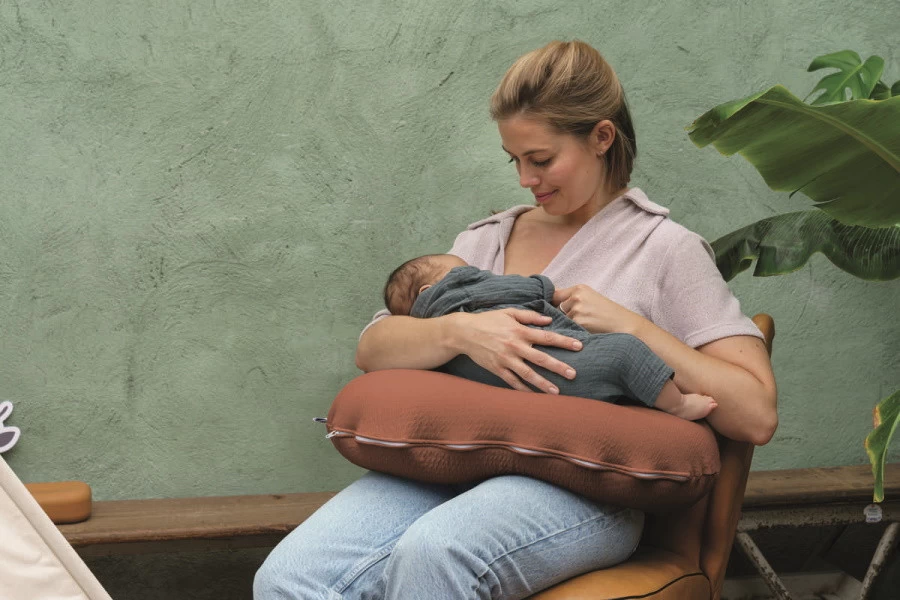 Het kussen heeft een afneembare hoes die gemaakt is van 95% biokatoen en 5% elastaan. De vulling van dit voedingskussen bestaat uit microkorrels uit polystyreen die zeer fijn en stil zijn. Beiden zijn wasbaar in de wasmachine op 30ºC en niet geschikt voor in de droger.
