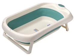 Het badje heeft twee stevige, inklapbare poten, zodat het badje altijd veilig staat. Het water laat je zonder problemen weglopen door de afsluitbare stop. Het badje is 74 x 46 x 20 cm groot, ingeklapt is hij maar 10 cm hoog! Hij is geschikt voor kindjes vanaf de geboorte tot een leeftijd van ongeveer 2 jaar.