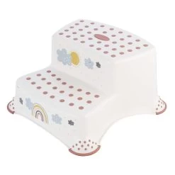 Het opstapje is wit van kleur en is voorzien van leuke afbeelding van een vrolijke regenboog. De nieuwe technologie van overprint (IML) voorkomt dat de afbeelding vervaagt of loslaat.