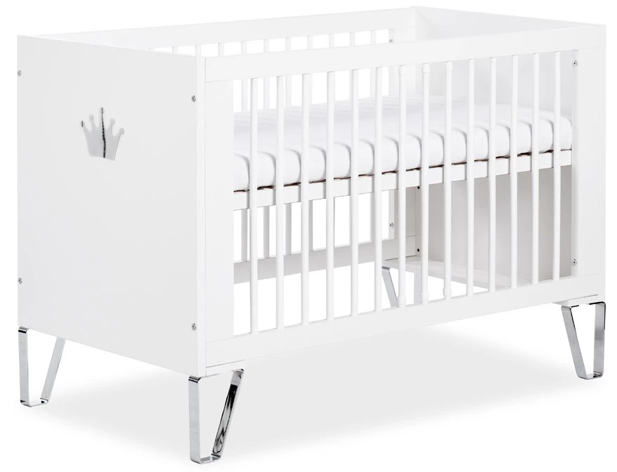 Wat zal je kleintje heerlijk slapen in het ledikant Laura! Ledikant Laura is wit van kleur met zilveren accenten. De poten zijn verchroomd en hebben een luxe uitstraling. Op de zijkanten van dit witte ledikantje is een zilveren kroon afgebeeld dat gemaakt is van spiegelmateriaal.