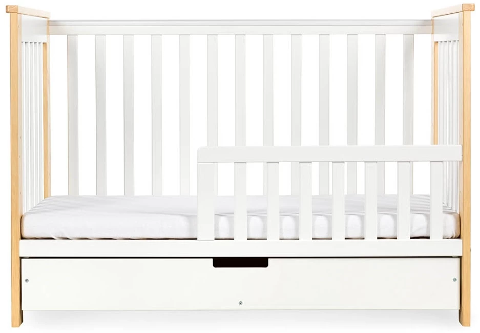 De lattenbodem van ledikant Lieke is in 3 hoogtes verstelbaar. Wanneer je kindje nog klein is hoef je dus niet diep te bukken om hem of haar op te tillen. Daarnaast is de zijkant los te halen zodat je je kindje er makkelijk uit kan halen wanneer hij of zij groter is. Onderin het ledikant bevindt zich een handige lade waar je makkelijk spullen in op kunt bergen. Het ledikant is goedgekeurd volgens Europese veiligheidseisen.