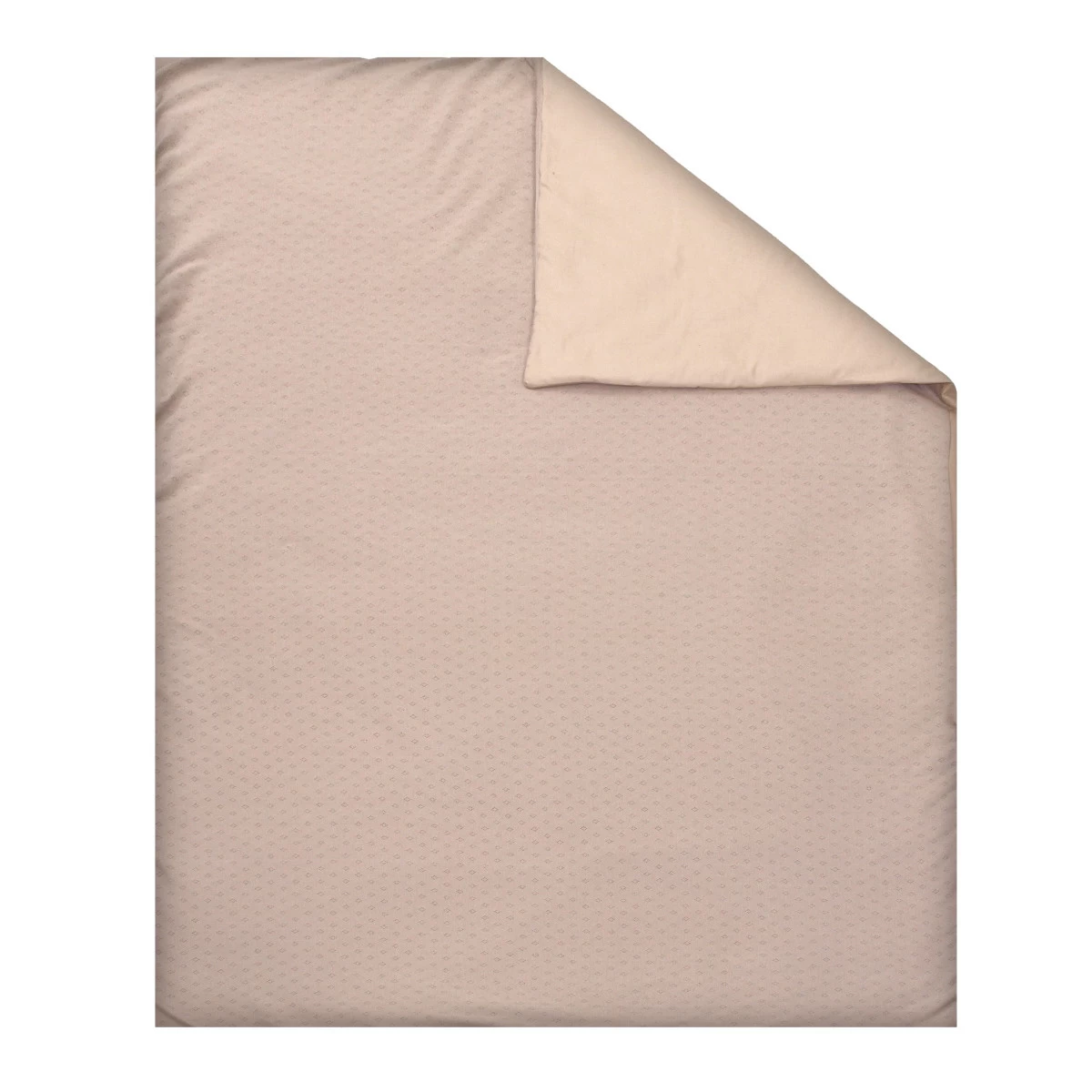 Deze deken is 100 x 150 cm groot en daarmee perfect geschikt voor in een ledikant. Het dekentje is gemaakt van 100% katoen.