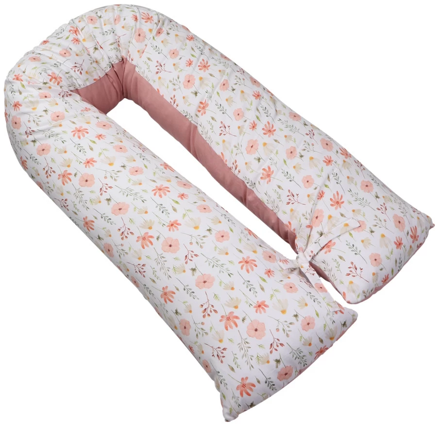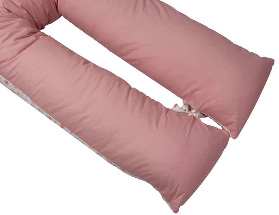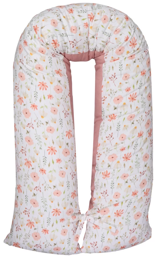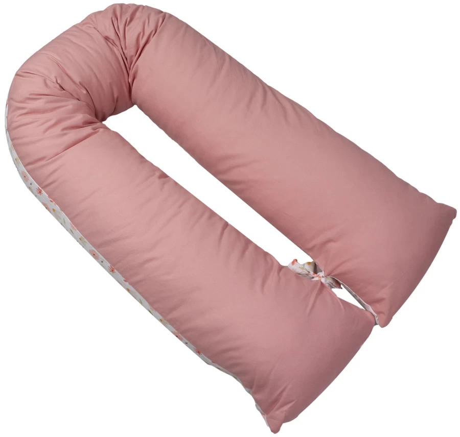 Het voedingskussen heeft een mooie print en een uni-kleurige kant: hierdoor kun je zelf kiezen welke kant je boven legt. Daarbij is hij voorzien van een afritsbare hoes die met de hand gewassen kan worden. Om de ronden vorm te behouden als je kleintje er op zit of tijdens het voeden, zitten er 2 touwtjes aan het einde van het voedingskussen die aan elkaar geknoopt kunnen worden. De lengte van het voedingskussen is 155 cm.