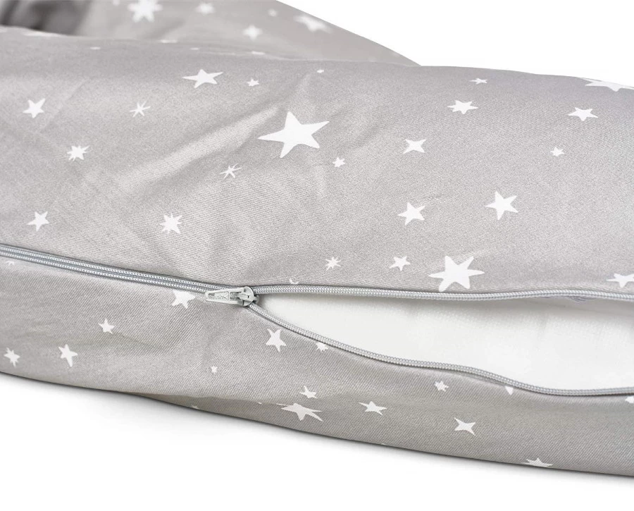 Het kussen heeft een afneembare hoes van duurzame, ademende natuurlijke vezels die niet-irriterend en antiallergeen zijn. (100% katoen) Zowel de hoes (40°) als de vulling (30°) kunnen in de wasmachine gewassen worden.