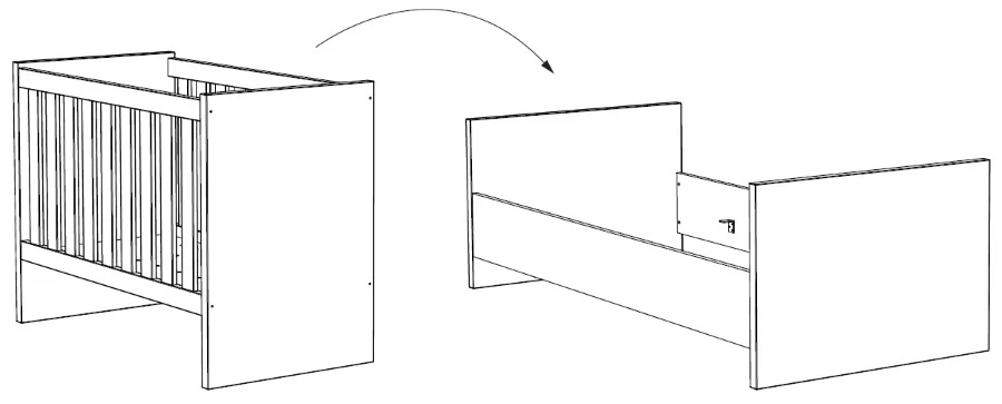 - Buitenmaat ledikant: 127 x 67 x 96 cm (l x b x h)