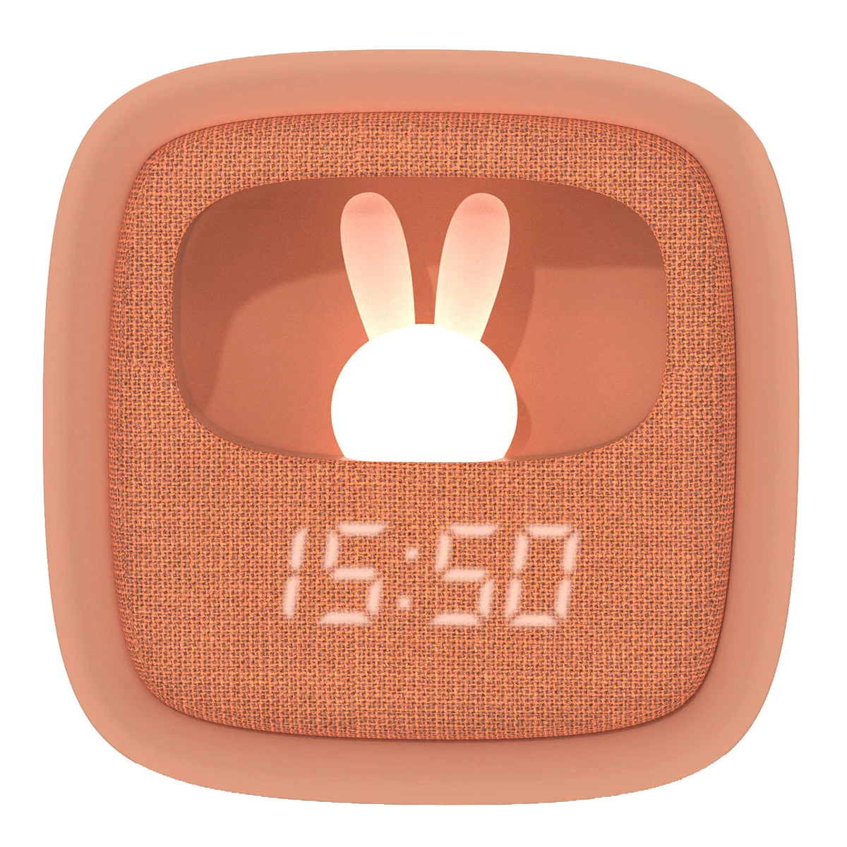 De wekker is tevens voorzien van een superschattig nachtlampje in de vorm van een lief, klein konijntje. De wekker is voorzien van een oplaadbare accu (micro USB, 5V) waarmee je tot 14 uur lang voorzien bent van de juiste tijd en een kalmerend lampje. Voldoende tijd dus voor de langste dutjes!