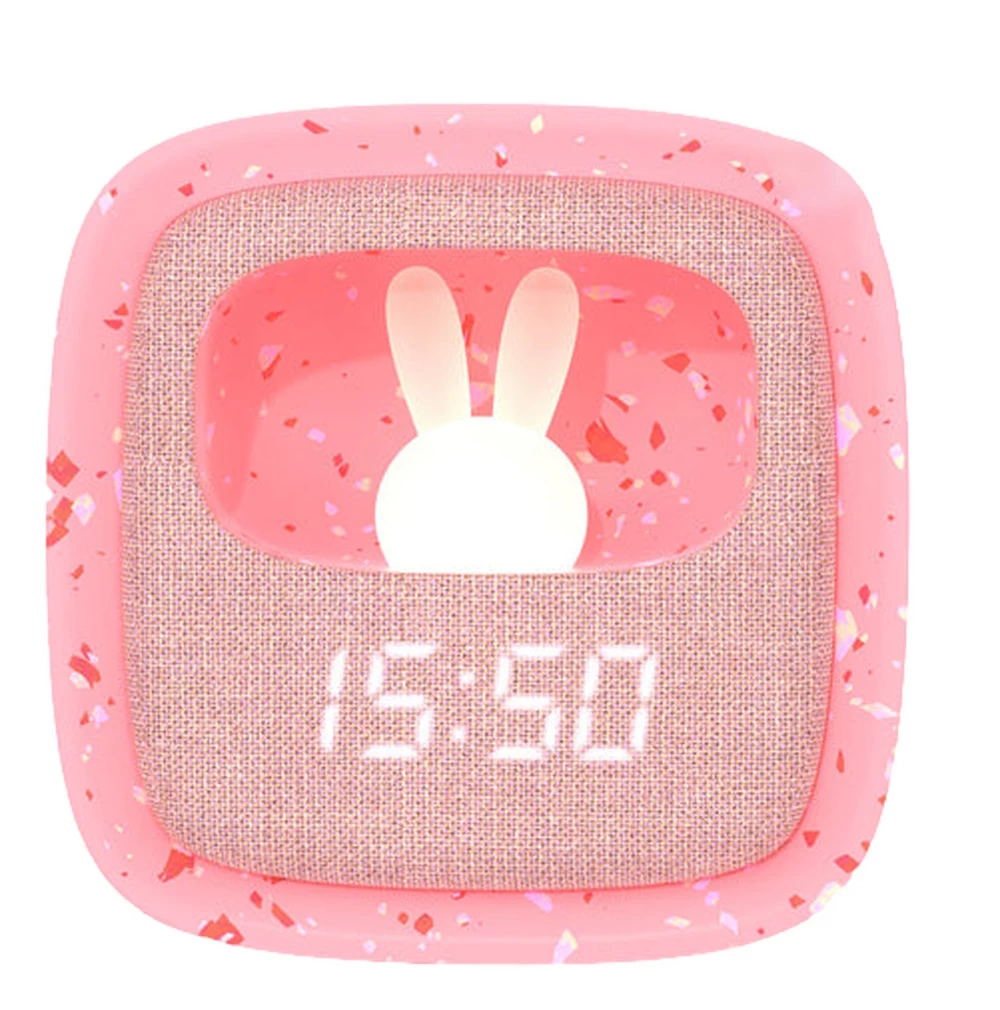 De wekker is tevens voorzien van een superschattig nachtlampje in de vorm van een lief, klein konijntje. De wekker is voorzien van een oplaadbare accu (micro USB, 5V) waarmee je tot 14 uur lang voorzien bent van de juiste tijd en een kalmerend lampje. Voldoende tijd dus voor de langste dutjes!