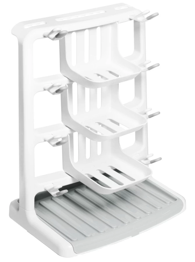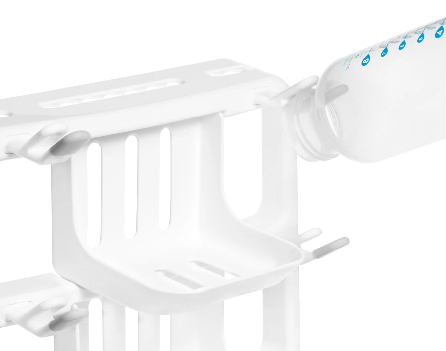 Een goed plekje vinden om alle flesjes te laten drogen is niet gemakkelijk. Met dit handige ruimtebesparende droogrek van Munchkin gebruik je zo min mogelijk aanrechtruimte en kan je alles netjes en georganiseerd laten drogen. Het droogrek is ontworpen voor flessen, spenen, afsluitschijfjes, bekers, rietjes en kleppen.