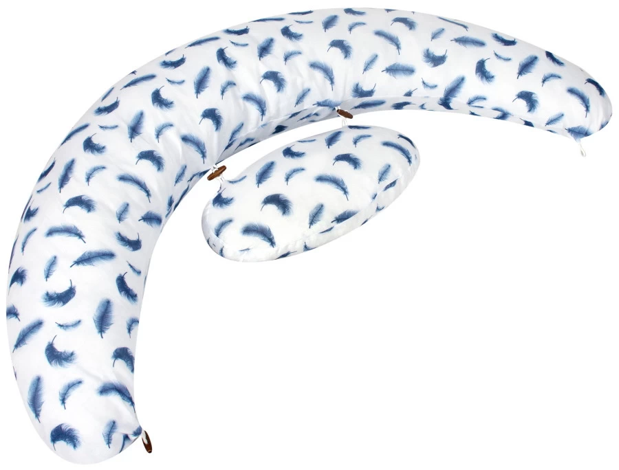 Het voedingskussen is voorzien van een hoes die gemaakt is van 100% katoen. Om ervoor te zorgen dat het voedingskussen rond blijft staan als je kleine er op zit of tijdens het voeden zit er een knoop aan het einde van het voedingskussen. De lengte van dit voedingskussen is 195 cm. De diameter van dit voedingskussen is 35 cm.