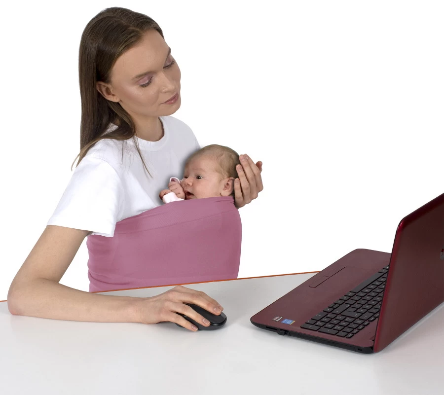 De stof van de Skin to Skin top is zeer zacht en licht. De band wordt gedragen als een strapless top waarin je kleine comfortabel in een verticale positie tegen de oude aan kan liggen. Het prettigste voor de baby is op een blote huid, zodat de baby het beste de warmte kan voelen en de geur kan ruiken.