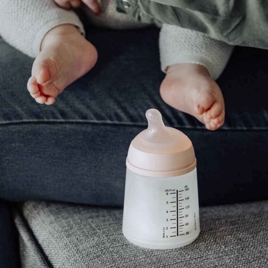 De ultradunne Slow Flow silicone speen uit de Zerø.Zerø™ collectie van Suavinex is gemaakt om de vorm, flexibiliteit en het gevoel van een echte tepel na te bootsen. Dankzij de natuurlijke gebogen vorm kan je kindje makkelijker een goede houding aannemen tijdens het drinken. De speen voorkomt dat je kindje lucht inslikt dankzij de vorm, en doordat de speen altijd gevuld blijft met vloeistof. De fles bevat een anti-koliek zakje dat samentrekt op het ritme van je kindje tijdens het drinken, dit systeem helpt tegen luchtbellen en voorkomt eventuele krampjes.