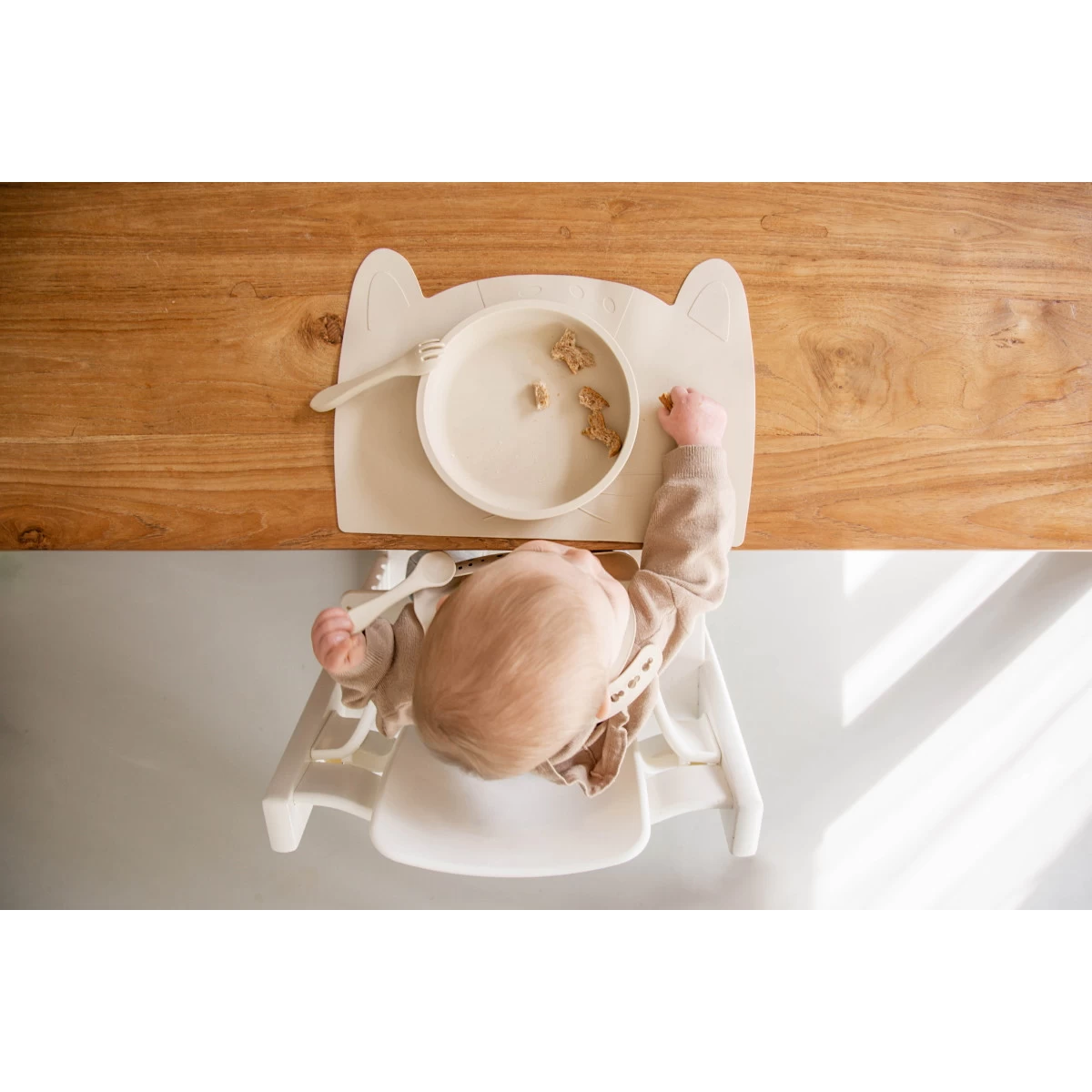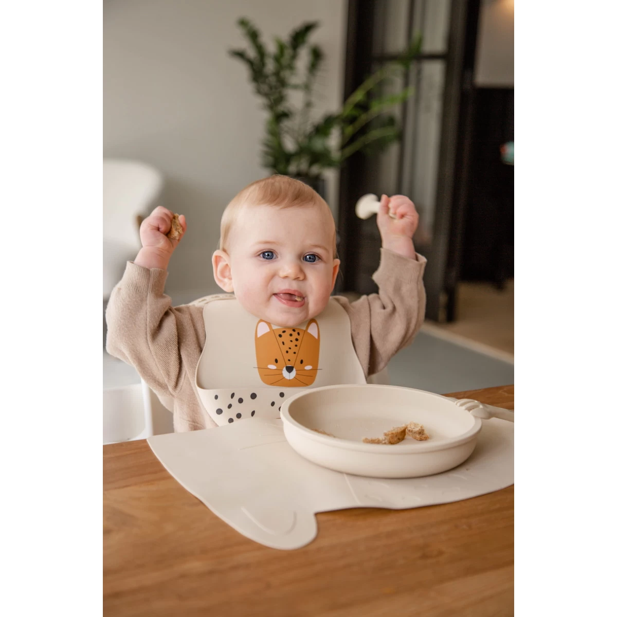 Jammie! Lekker eten wordt extra leuk van dit mooie siliconen bordje van Tryco. Bij elke hap die je kleintje neemt zie je meer tevoorschijn komen van de mooie zandkleur.