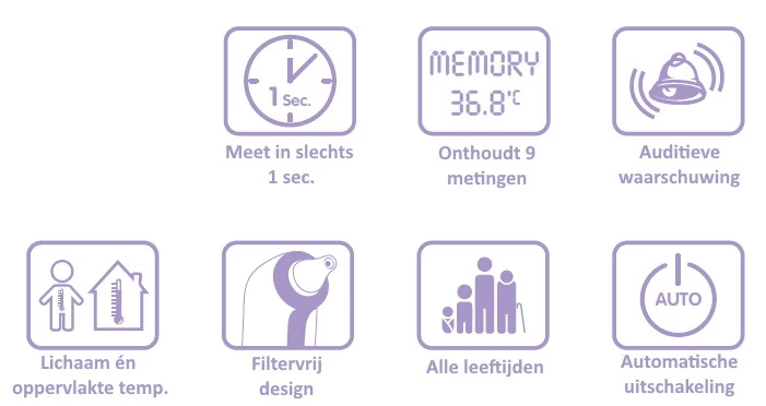Deze digitale thermometer schakelt automatisch uit als je hem even niet gebruikt. Niet alleen de lichaamstemperatuur kan je met deze oor thermometer opmeten, ook de omgevingstemperatuur kan gemeten worden.