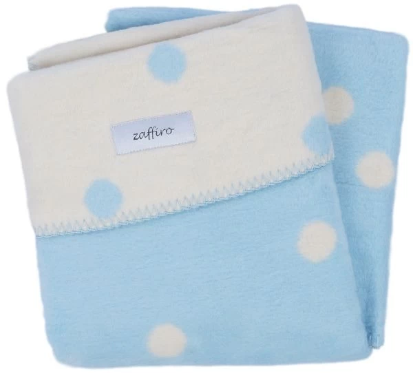 De dekentjes van Zaffiro zijn prachtig! Ze zijn gemaakt heerlijk zachte stof wat uit 100% katoen bestaat. Je kindje zal snel in dromenland belanden onder dit lekker warme dekentje! Het dekentje is ecru met blauw en heeft stipjes. Aan de andere kant zijn de kleurtjes omgedraaid en hij heeft de afmetingen 100 x 150 cm.